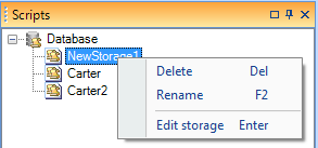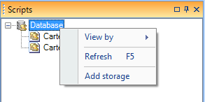 Right-click on the root (the “Database” node) in the storage explorer. The script manager’s context menu is shown in Figure 4.