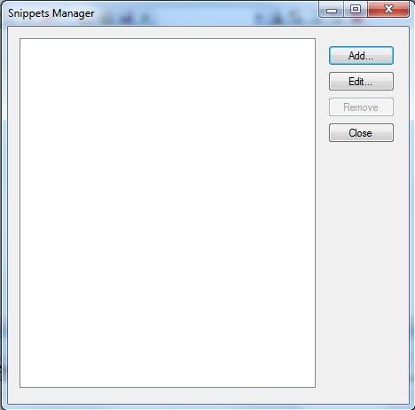 The user is able to add/edit/remove a snippet by making use of this manager.