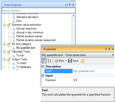 This section describes the required steps for implementing a specific tool – the Data Quantile tool - which calculates quantile values for one or more time series. Inputs to the tool are: