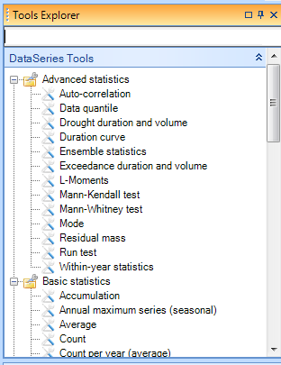 A MIKE OPERATIONS tool is a single-purpose component made available to the end-user through the MIKE OPERATIONS Tool Explorer. Single-purpose here implies that the tool focuses on a single action like resampling a time series or clipping a GIS feature set to a specified boundary. Since tools can be strung together into sequences in the Tools Explorer, more complex or multi-step actions can be handled this way and should not be developed as a single tool.